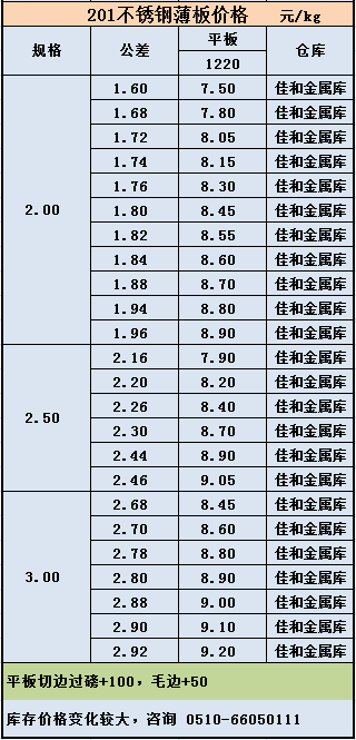 201冷軋不銹鋼價格方面,報價基本穩(wěn)定,個別商家報價有小幅調(diào)整。目前無錫市場J1聯(lián)眾現(xiàn)貨1.0mm報8850-8900元/噸,寶鋼、宏旺、誠德報8750-8800元/噸,J2青山、宏旺現(xiàn)貨1.5mm報至8400元/噸;