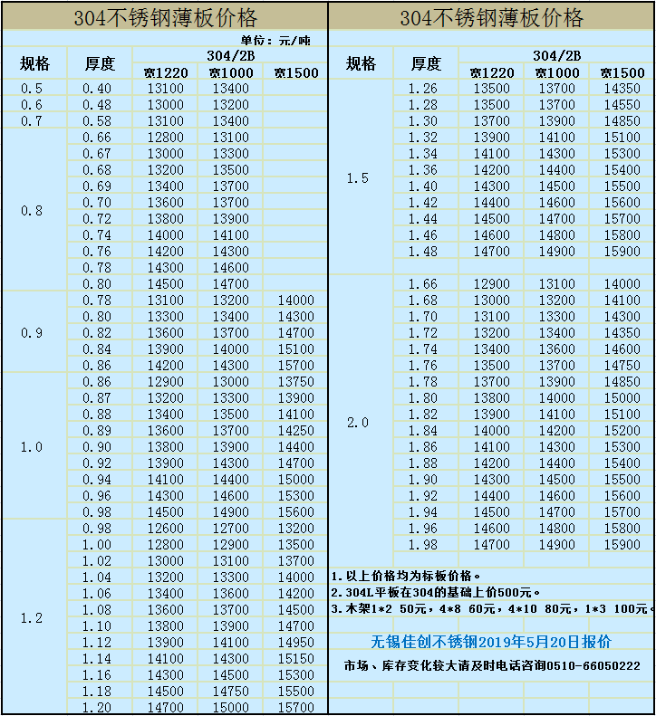 304大廠冷軋2.0mm切邊報至14600-14650元/噸。