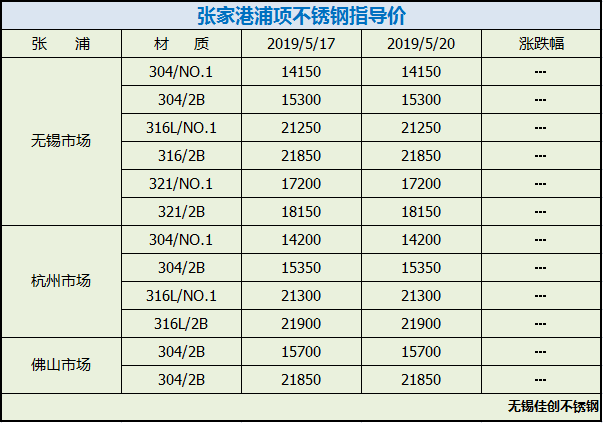 2019年5月20日張家港浦項最新不銹鋼板價格