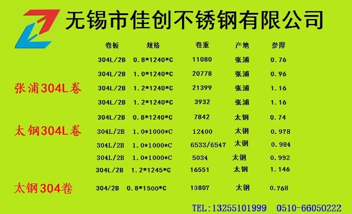 備注:以上明細(xì)均可按照客戶要求進(jìn)行不銹鋼分條加工,具體分條加工費(fèi)及卷價(jià)格咨詢:0510-66050222 13255101999