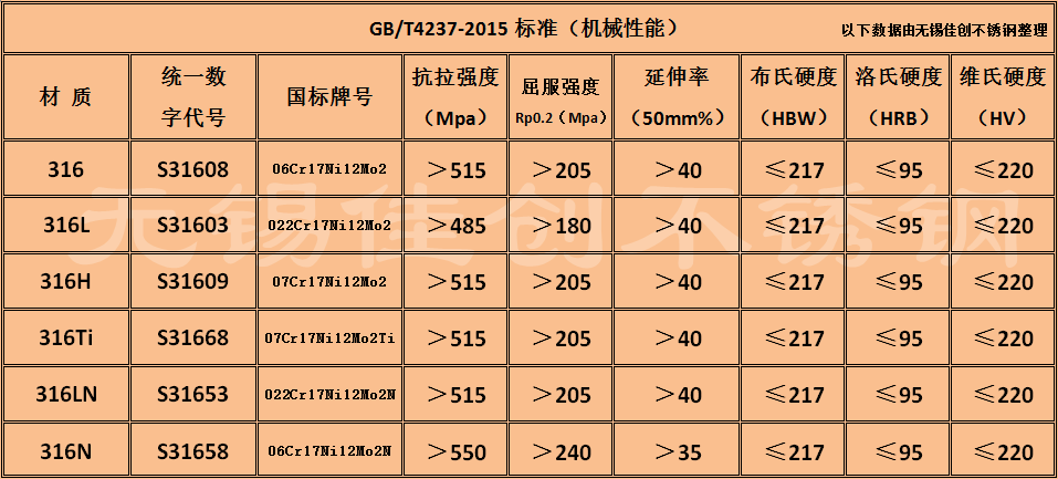 316系不銹鋼GB/T4237-2015標準下機械性能對比: